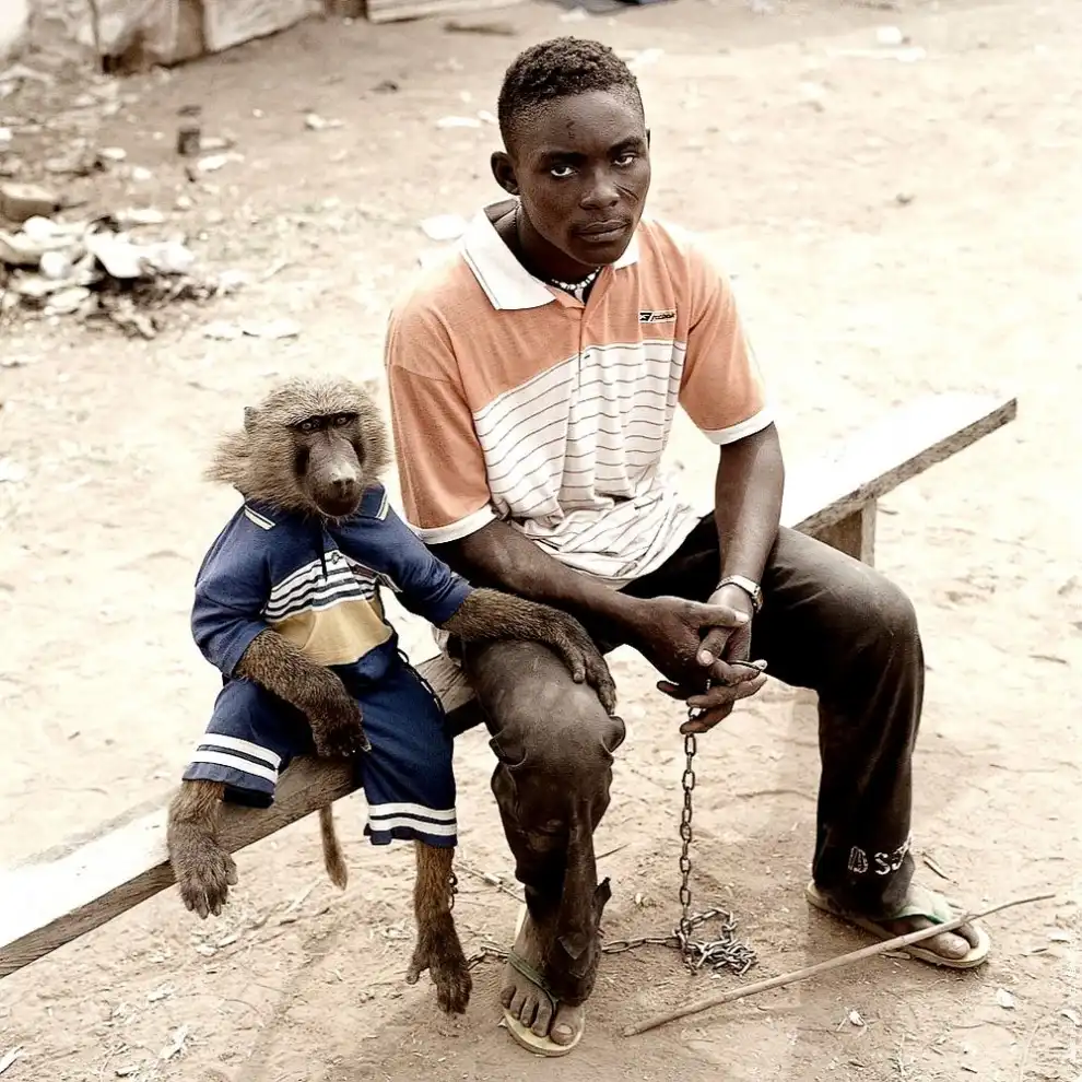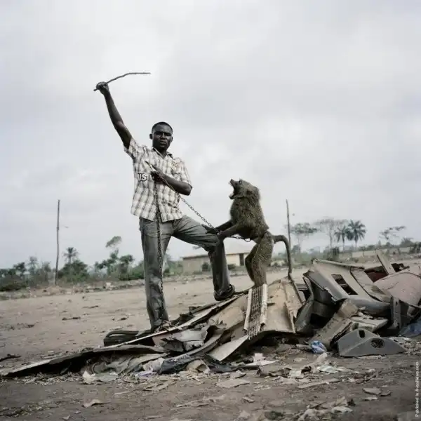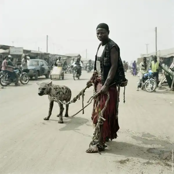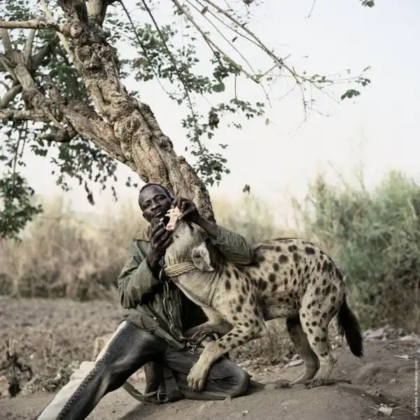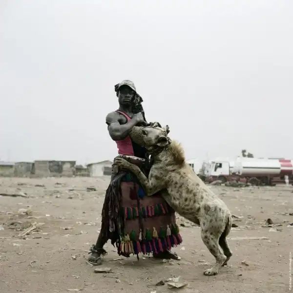 Питер Хьюго родился в 1976 году и вырос в Кейптауне, ЮАР. Он южноавриканский фотограф, специализирующийся, в основном, на портретах, и его работы связаны с культурными традициями африканских сообществ. Сам Хьюго называет себя «фотографом-политиком с маленькой буквы п». Одна из самых знаменитых работ этого фотографа – серия «Гиены и другие люди». За портрет человека с гиеной Хьюго получил приз в категории «Портреты» на фотоконкурсе World Press Photo в 2005 году.