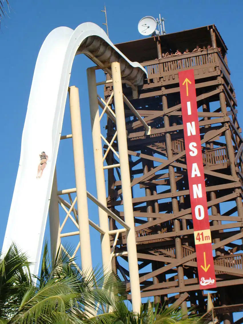 В бразильском городе Форталеза находится замечательный аквапарк. Его главной достопримечательностью является горка Insano, высота которой составляет 41 метр. Это самая высокая водная горка в мире, что, конечно, отмечено в Книге рекордов Гиннесса. Спуск по этой горке занимает около 4–5 секунд, но за это время человек может развить скорость до 105 км/ч. (10 фотографий)