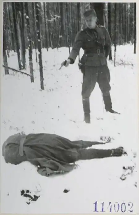 несмотря на то, что немецкий офицер направил на него пистолет и вот-вот нажмет на курок.