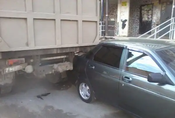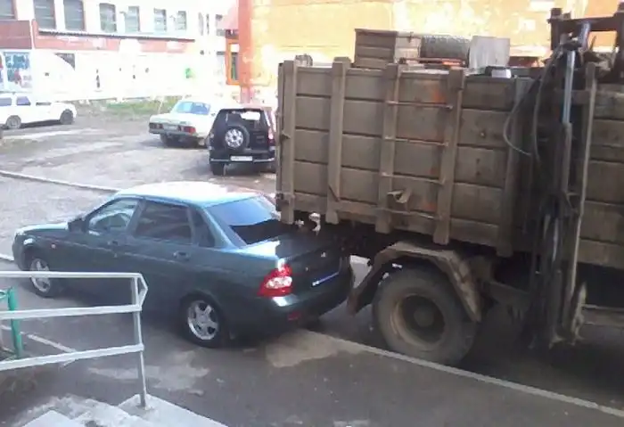 Водитель мусоровоза не стал церемониться с нарушителем,