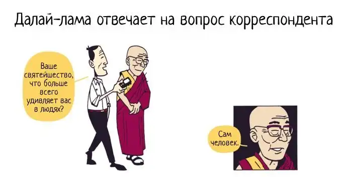 Когда он лично встретился со святейшеством, он задал ему вопрос: "Что больше всего удивляет его в людях?".