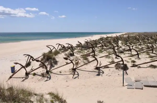 Сегодня кладбище якорей находится на территории пляжа Barril и тянется по побережью на расстояние 14 км