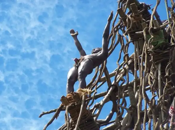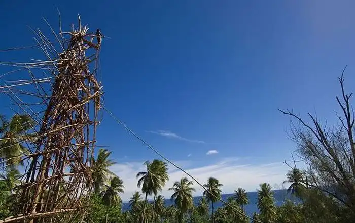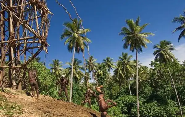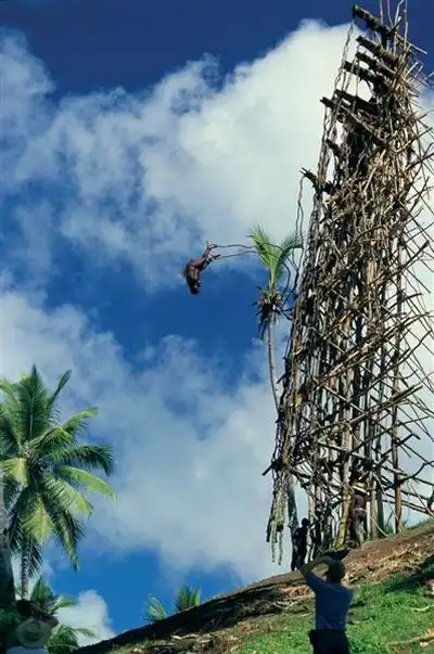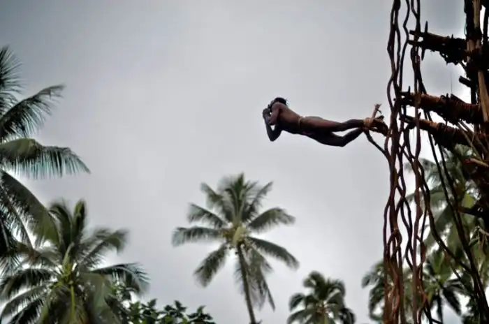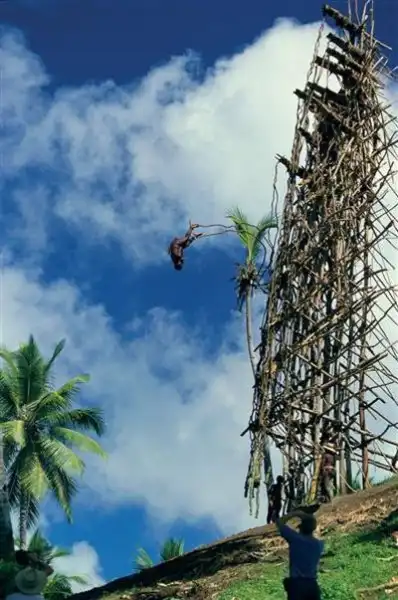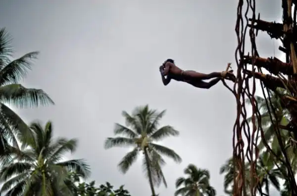 Жуткое зрелище, многие из участников этого опасного ритуала "влетают" головой прямо в землю.