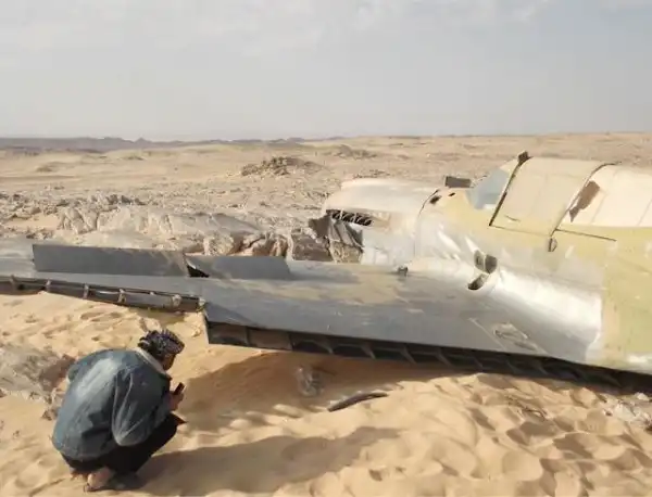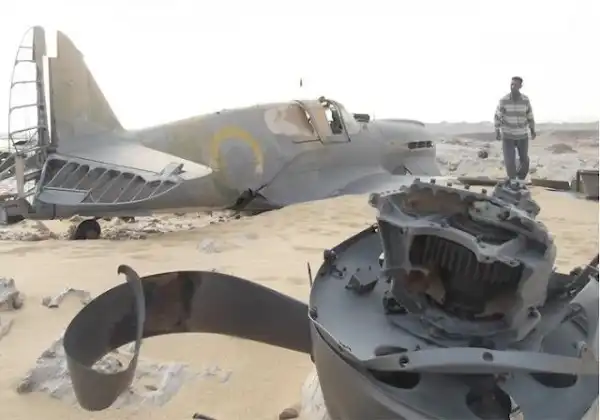 В 1942 году самолет Кёртисс P-40 совершил вынужденную посадку в пустыне Сахара. Шасси заклинило и самолет сел на брюхо, проехав более ста метров, теряя винт и части фюзеляжа. Пилот вылез из кокпита и растворился в песках истории. Есть предположения , что это был James Francis “Stocky” Edwards, канадский ас, но это предположение основано только на серийном номере самолета. 70 лет спустя самолет нашли и он оказался в сносном состоянии.