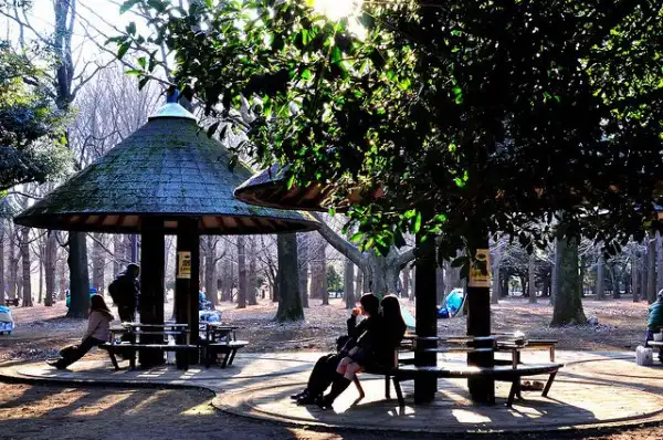 Парк Йойоги – это просторные газоны, пруды, фонтаны, большой сад роз, специальные площадки для выгуливания собак, лесные зоны и дорожки для пробежек. В отличие от большинства остальных парков Японии здесь не так уж много деревьев сакуры, столь любимых японцами. Однако расположена сакура в парке Йойоги так удачно, а форма деревьев настолько привлекательна, что весной, в пору цветения, жители Токио традиционно приходят именно сюда, чтобы с комфортом расположится под усыпанными цветами деревьями, чтобы насладиться красотой природы и выпить чашечку сакэ.