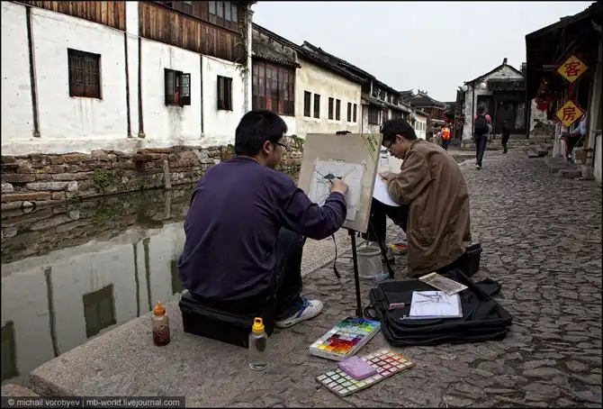 Еще одной из достопримечательностей Чжоучжуана являются художники, приехавшие из разных уголков Китая.