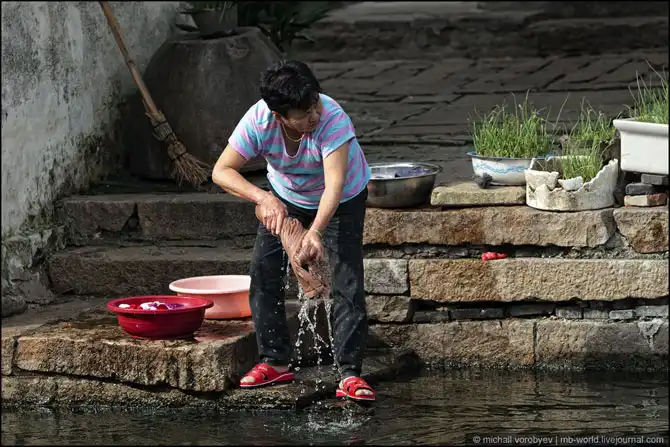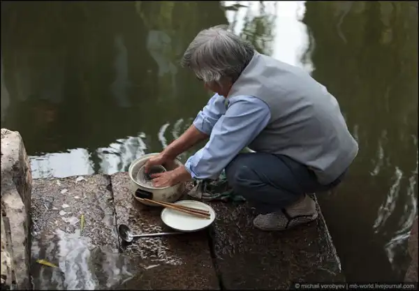Есть в этой деревушки жители, которые в воде каналов моют посуду.
