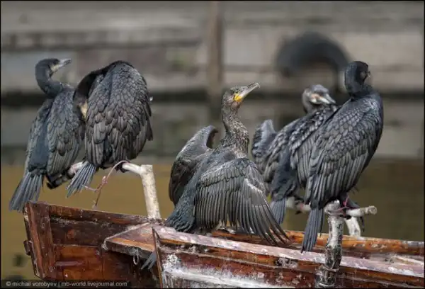 Рыбак с бакланами, работает антуражем для фотографирования с туристами за деньги.