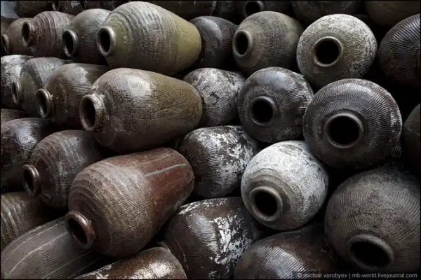 Пустую тару складывают друг на друга.