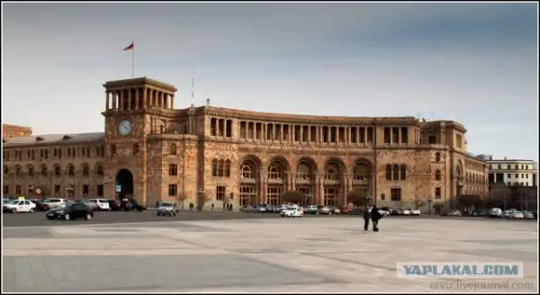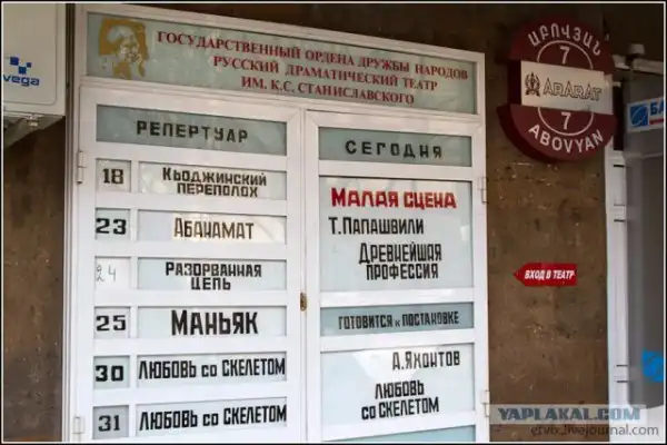Из всех трех закавказских столиц в Ереване больше всего заметно влияние России, да и вывески тут очень часто дублируются на русском языке. В самом центре города находится русский театр: