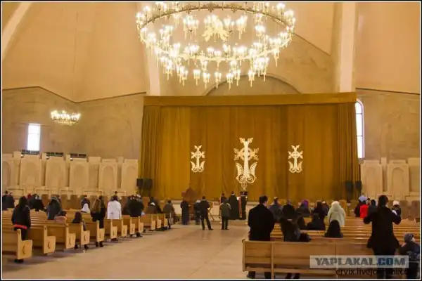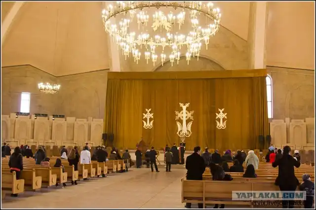 Изнутри в соборе ничего примечательного нет. Люди заходят, смотрят, даже фотографируются, монахи не обращая на посетителей никакого внимания, осуществляют службу.