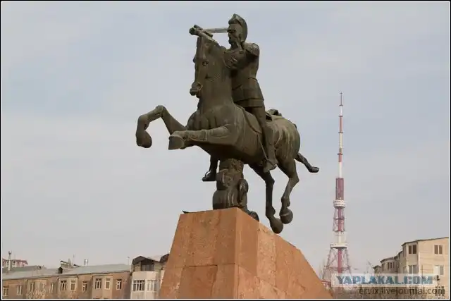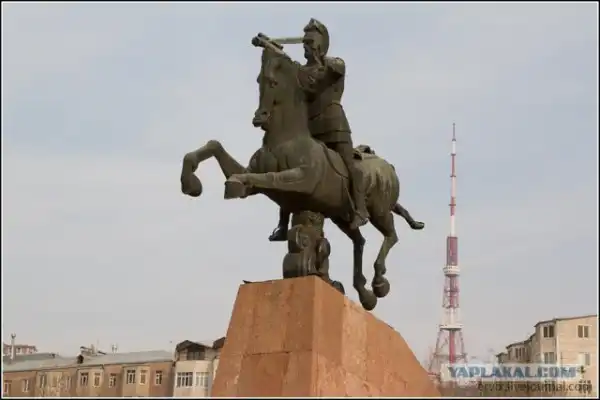 Один из наиболее странных памятников города - памятник какому-то другому армянскому герою. В самом памятнике не было бы ничего плохого, если бы не изображение лошади всадника. Такое ощущение, что лошадь... стоит на собственных кишках. Это странно шокировало.