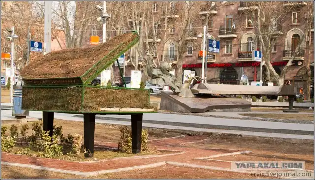 Любопытно, что на прилегающей к скверу торговой улице, трудно найти ресторан армянской кухни, при том, что заведений общепита в этом квартале полно, но количественно преобладают либо заведения "глобальной" кухни ("макдональдс", "сбарро"), либо кафе иранской кухни, и даже ливанский фаст-фуд. Кстати, иранцев в Армении какое-то огромное количество, и приезжают они на странно разрисованных автобусах, типа такого: