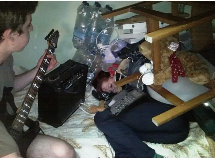 как парень взгромоздил на нее полкомнаты и даже сыграл для нее песню на гитаре.