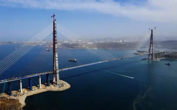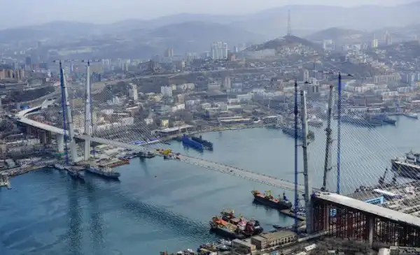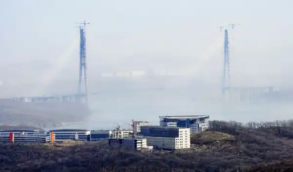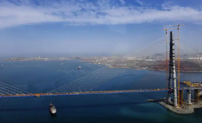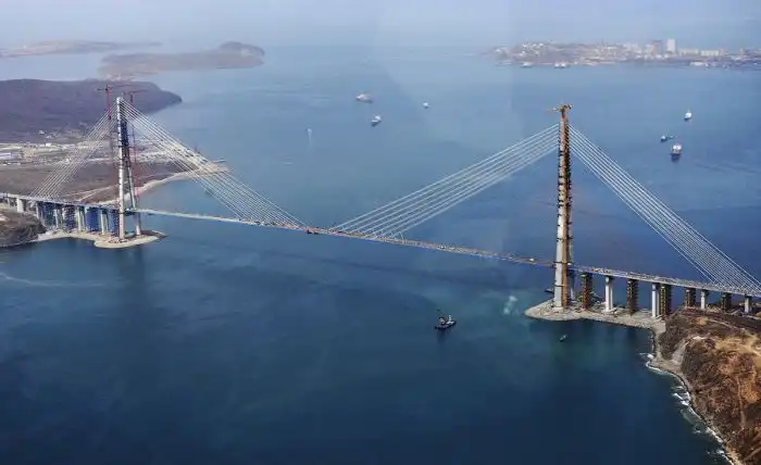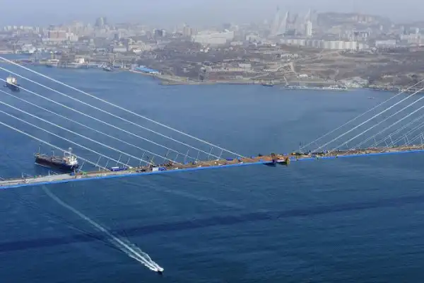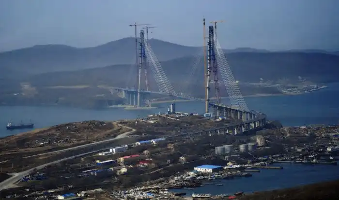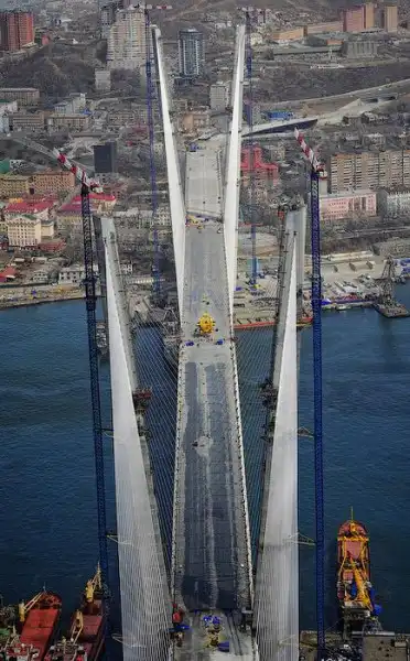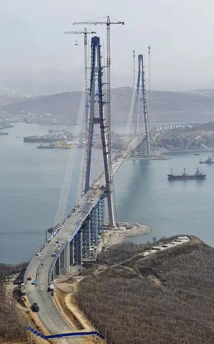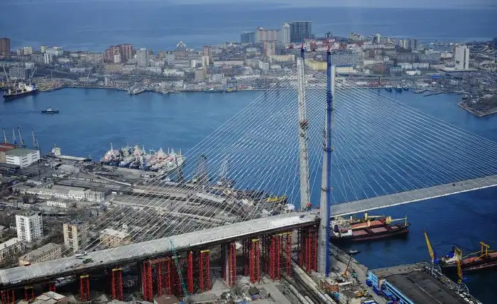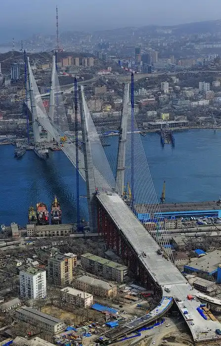 С такого шикарного ракурса отлично просматривается грандиозный мост на остров Русский
