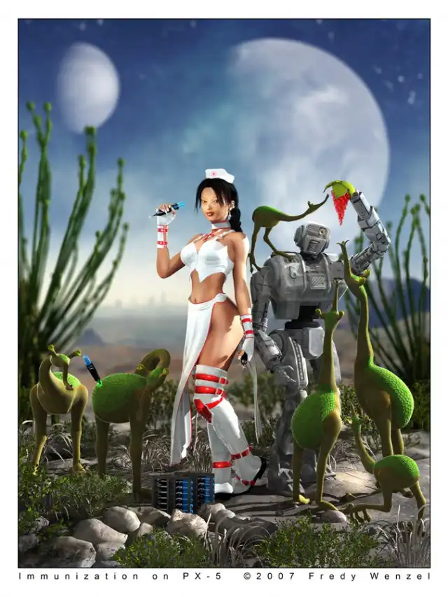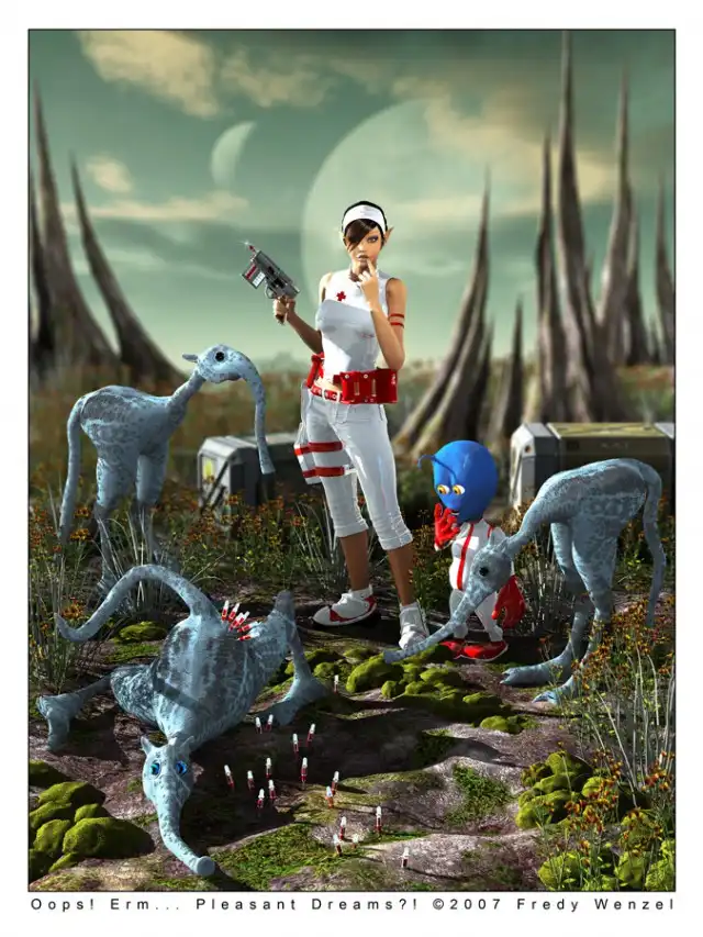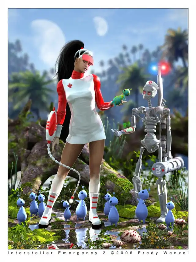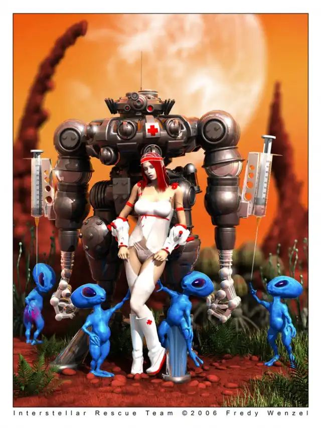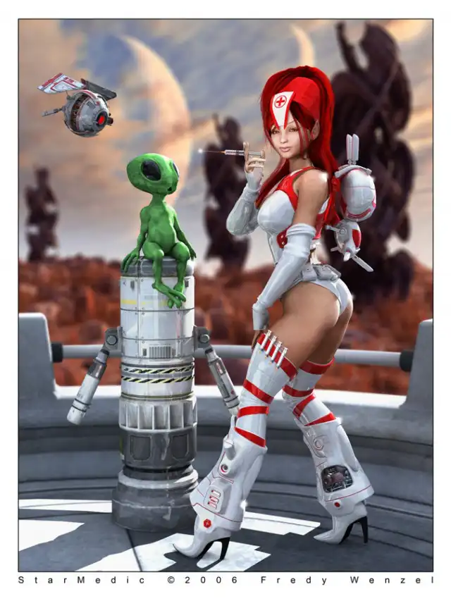 И снова научно-фантастические работы немецкого 3D-художника Fredy Wenzel, другие работы которого я выкладывал чуть раньше: . На этот раз будет серия его работ с космическими медсестрами, которые, вероятно, работают по межпланетному вызову, - "StarMedics".