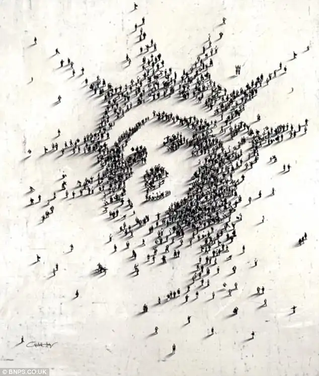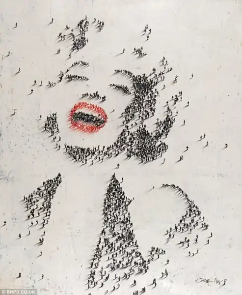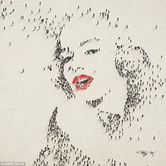 Грэг Алан, которому 40, создал эти удивительные картины знаменитостей Мэрлин Монро, Одри Хепборн, Элвиса Прэсли и статую Свободы. Картины он создавал используя людей на площади.