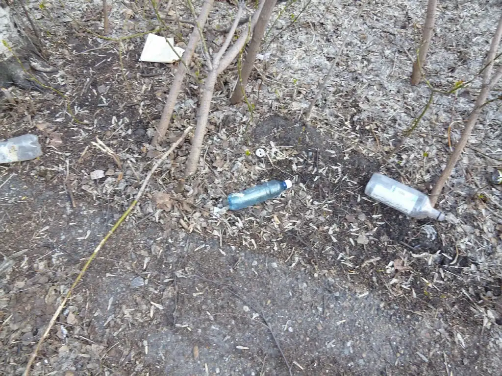 И любители делать дырки в пластиковых бутылках облюбовали это место