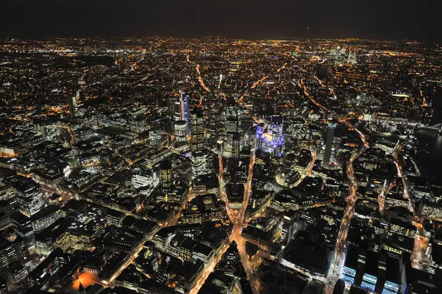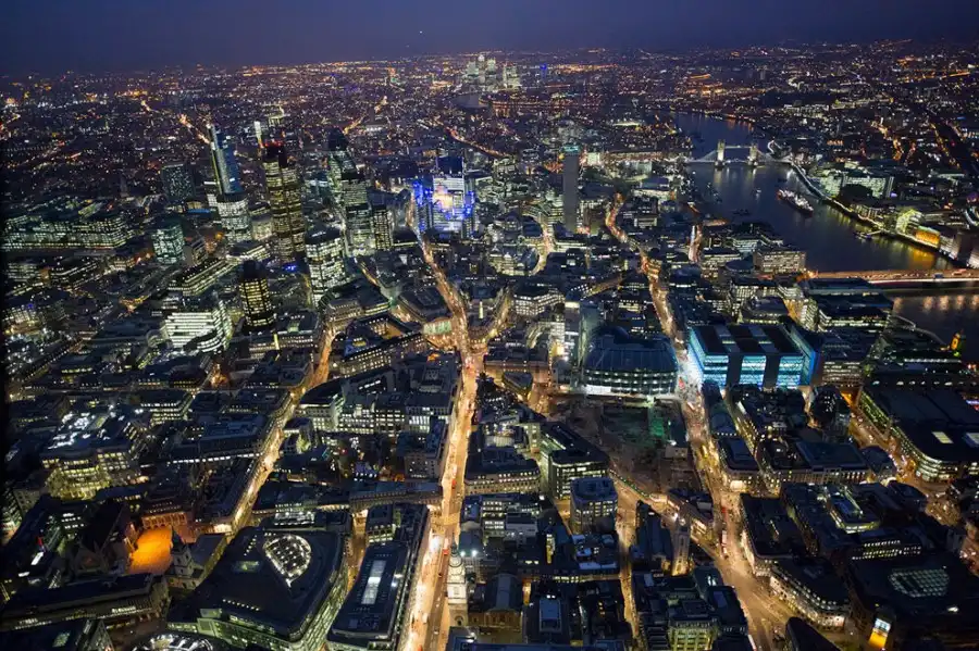 Фотограф Джейсон Хоукс, живущий в пригороде Лондона, занимается аэрофотосъемкой с 1991 года. Одной из вещей, на которых он специализируется, является ночная фотография; во время съемки он устанавливает камеру на гиро-стабилизатор и делает фотографии непосредственно из открытой двери вертолета. Сегодня мы предлагаем вашему вниманию цикл фотографий Джейсона Хоукса, запечатлевших ночную Великобританию.