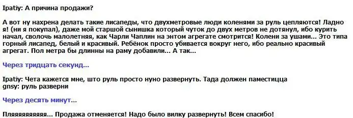 Интересное объявление о продаже велосипеда было найдено в интернете.