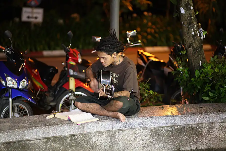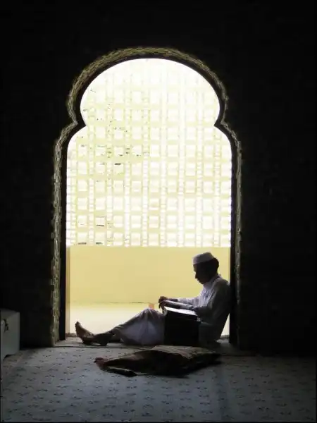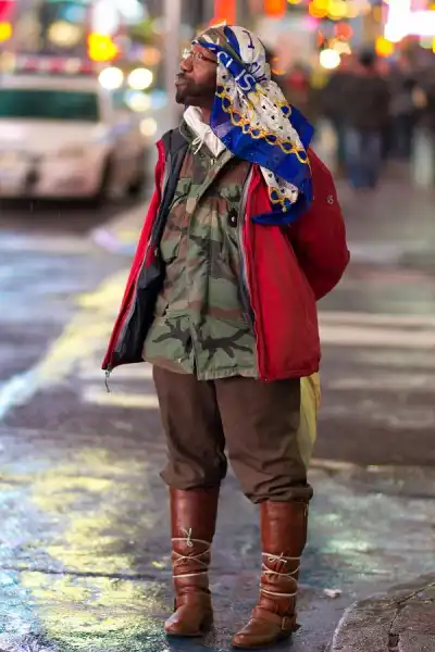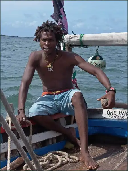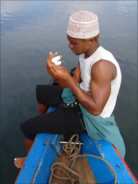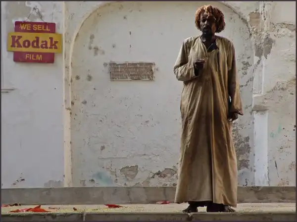 Когда он первый раз появился на Ламу, он пришел в мечеть просить милостыню, но там ему ничего не дали и прогнали... тогда он пошел к рыбакам, те его накормили, приютили. После этого он отрастил расты и стал читать проповеди на площади у Старого Форта, точнее, не проповеди – так, аяты из Корана, а то и просто имитирует арабскую речь, не всегда и разберешь