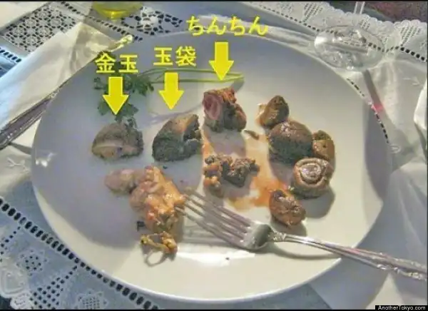 Японец Мао Суджияма, который сам себя считает асексуалом, устроил в Токио необычный банкет. Сразу после своего 22-летия он перенес операцию по удалению своих гениталий и через Твиттер предложил приготовить их для шести желающих. Когда гости собрались, замороженный член был прожарен с грибами и подано гурманом по 250 долларов за порцию. :sick: