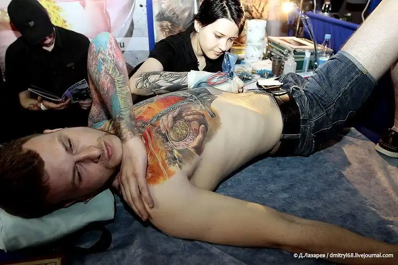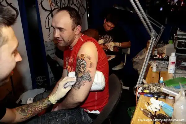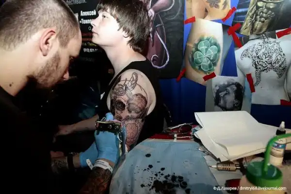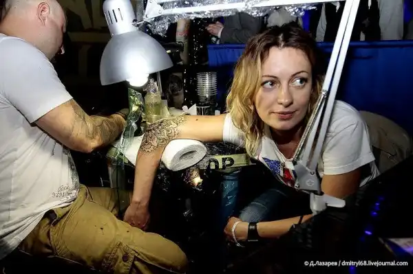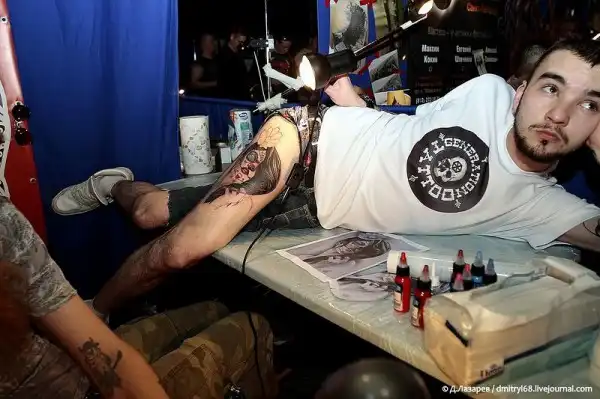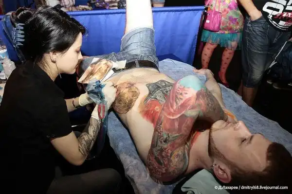 18 мая в Москве,в «Арена-Москоу» открылась пятая Международная Конвенция Тату. На конвенции помимо демонстрации татуировок по стилям и размерам приехали также работать 150 мастеров со всего мира, которые на два дня оккупировали клуб «Arena Moscow». Уже на подходе к клубу на улице толпилась приличная толпа.