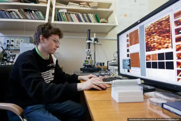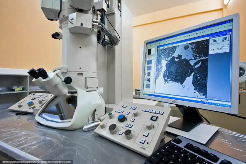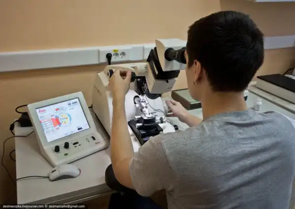 31. Большинство микроскопов фирмы Leica. На мониторе Ноутбука показано то, что можно увидеть в этот микроскоп
