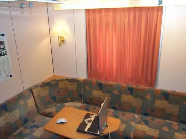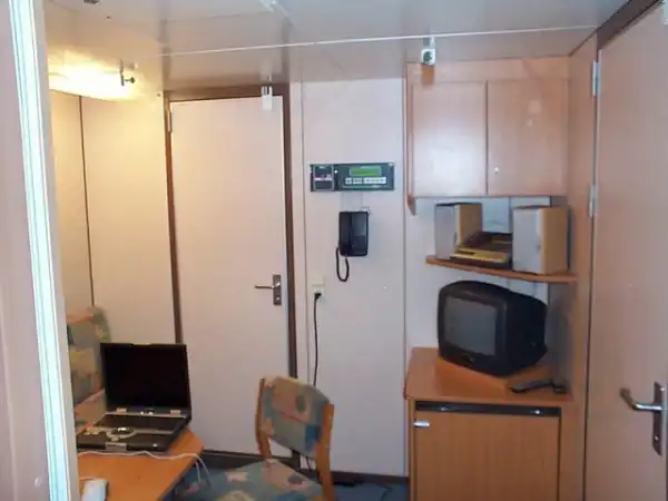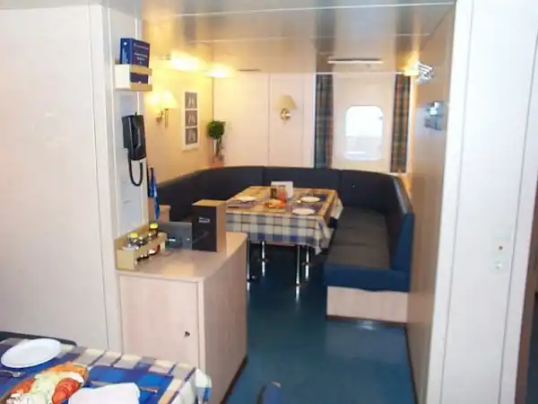 С другой стороны. В холодильнике всегда есть что-то пожевать если ночью захочется стоит кофеварка - кофе не ограничено, на ночных вахтах спасает от сна. Снимал перед рождеством - поставили елку (пластмассовая)