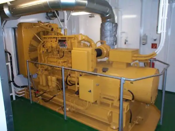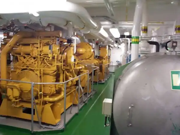 Аварийный дизельгенератор, находится в отдельном помещении, выше ватерлинии, на случай затопления или пожара в машинном отделении.