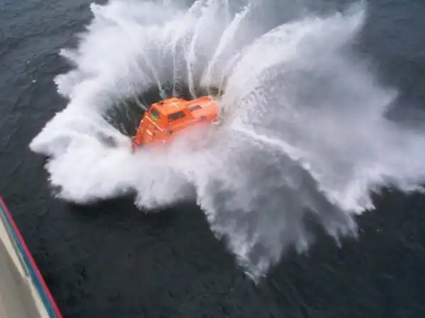 Последняя фотка - так выглядит сброс спасательной шлюпки на учениях по оставлению судна.