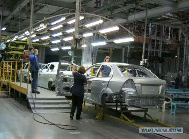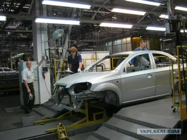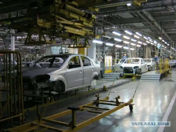 Дальше видно линию мелкоузловой сборки Шевроле Авео, Форза и Вида.