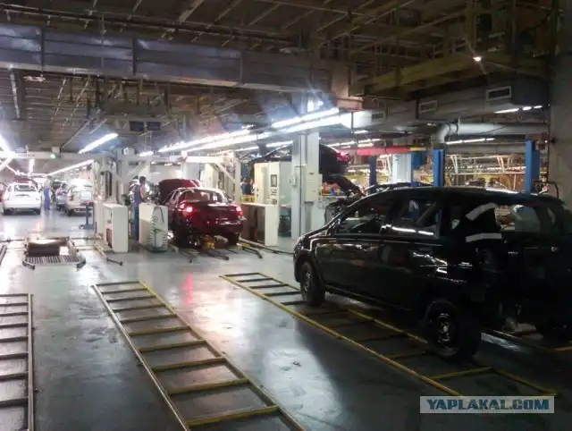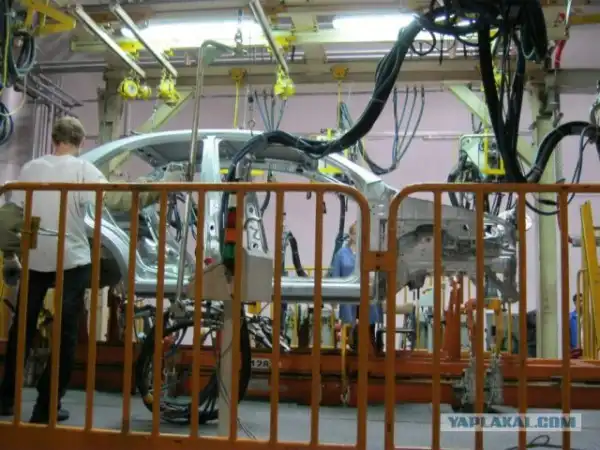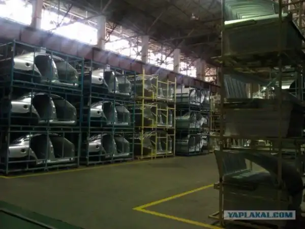 Так выглядит линия сборки-сварки ланосов и сенсов, но посмотреть, как это происходит мне не удалось, поскольку план по этим моделям уже выполнен и линия простаивала.