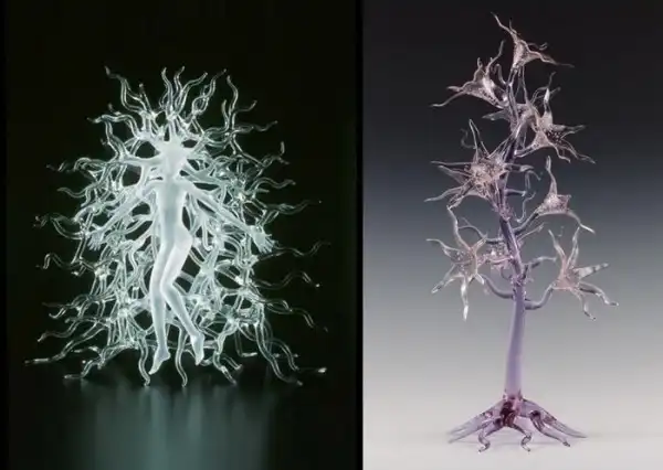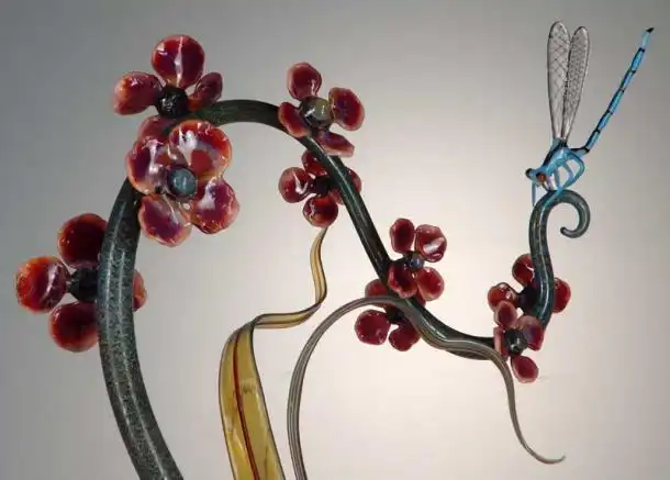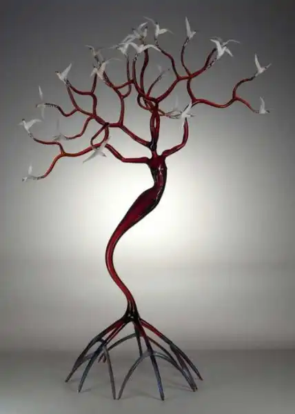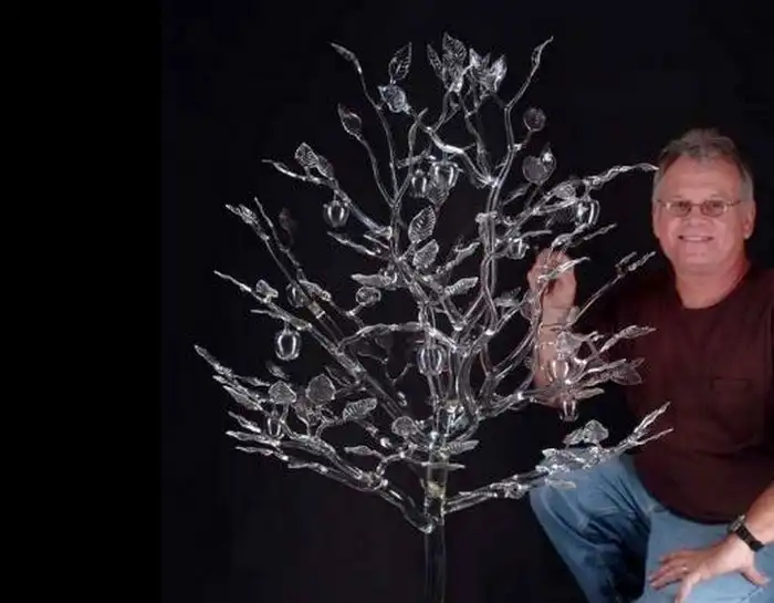 Американский стеклодув Роберт Микельсон – один из самых известных мастеров стеклянных дел. Он создает сказочные по красоте и утонченности стеклянные скульптуры, используя в работе, как бесцветное, так цветное стекло. Удивляет не только техника автора, мастерство исполнения, но и полет фантазии, разнообразие подходов и тематики скульптур.