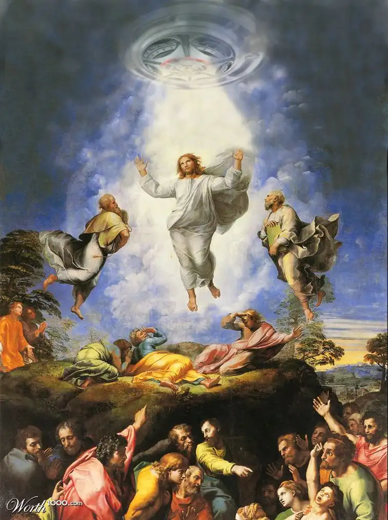 Уход Радомира, Рафаэль Санти (1517 -1520) в оригинале с изображением летательного аппарата Белого Иерарха-отца Радомира
