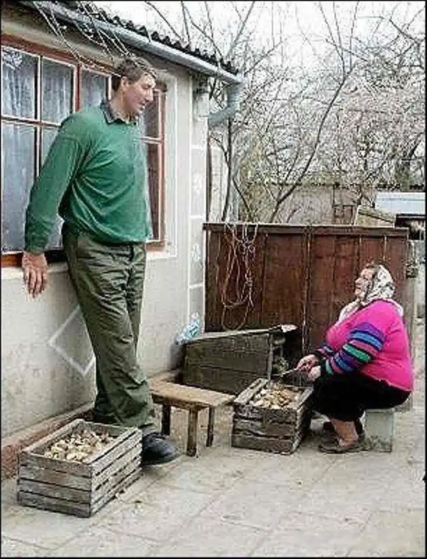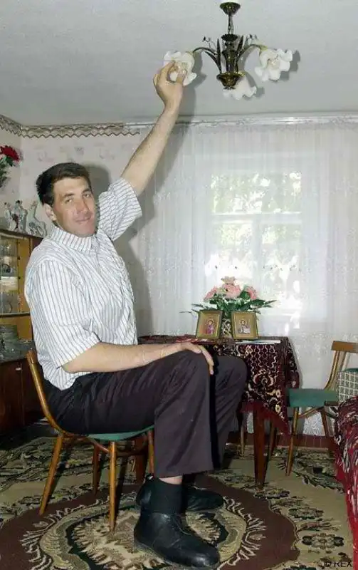 Леонид еще и обладатель самой большой руки, его ладонь в длину – 31 см. Трехлитровая банка в ней смотрится стаканом. Ленин кулак больше боксерской перчатки. Питается Стаднюк, в основном, картошкой и салом. Очень боится поправиться – «суставы и так не успевают за моим ростом, если растолстею, вообще слягу».