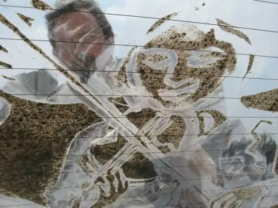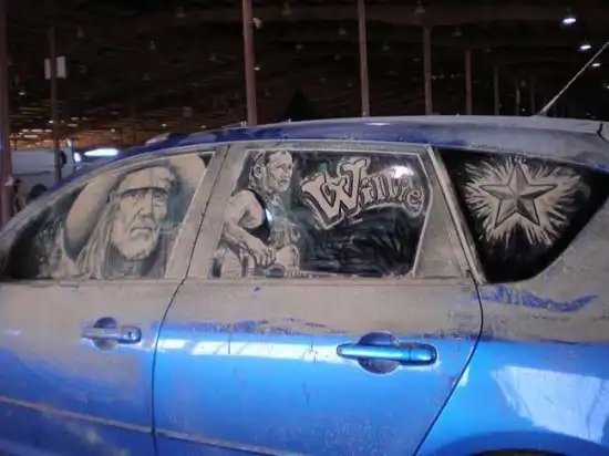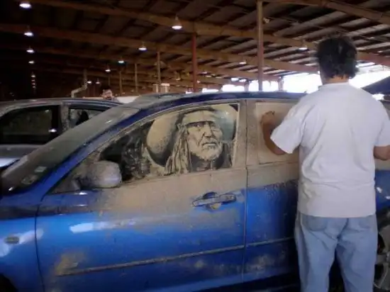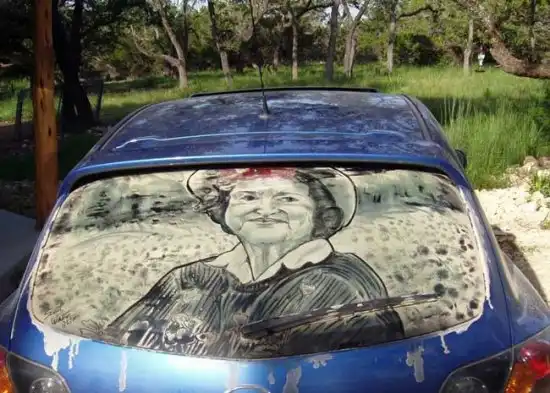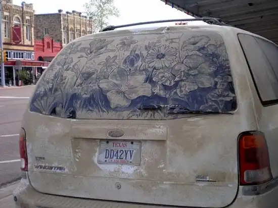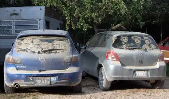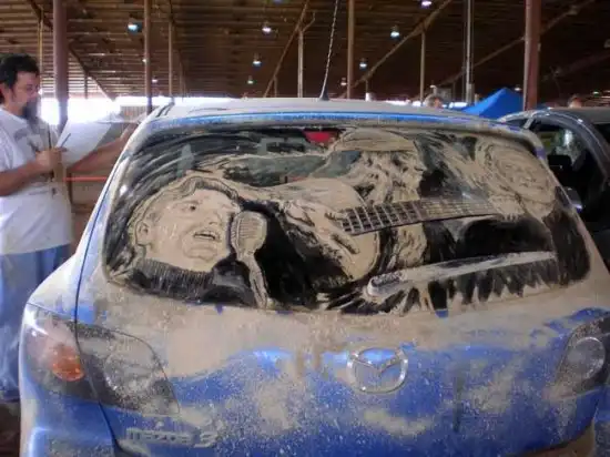 Скотт Вейд (Scott Wade) стал известным в вебе благодаря собственному необыкновенному хобби – он отрисовывают хорошие картины на запятанных автомобилях. Обычно, холстом ему служит запыленное заднее стекло автомобиля. Правда, понятно, что время жизни таких шедевров совершенно куцее – рядовая поездка по пыльному городку либо небольшой дождь могут стопроцентно убить нарисованное, но это Скота Вейда не останавливает и полностью не мешает ему продолжать создавать новые картины.