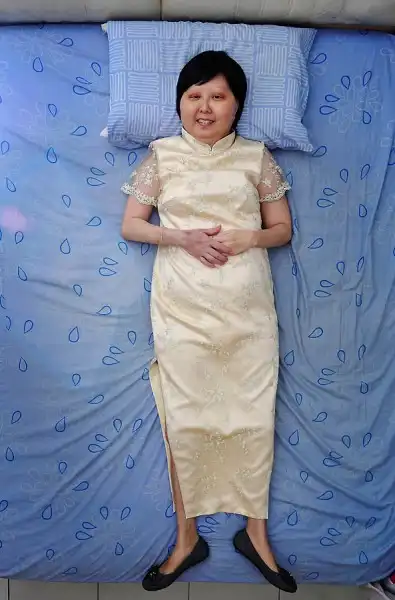 2. Фу Пяо Линь (умерла 1 августа 2011 годв) в китайском платье. Мадам Фу присоединилась к проекту, чтобы помочь людям говорить о смерти открыто. В возрасте 46 лет умерла от рака. (Desmond Lim, Wang Hui Fen/The Straits Times)