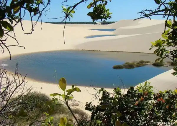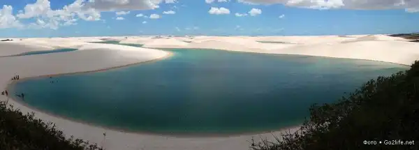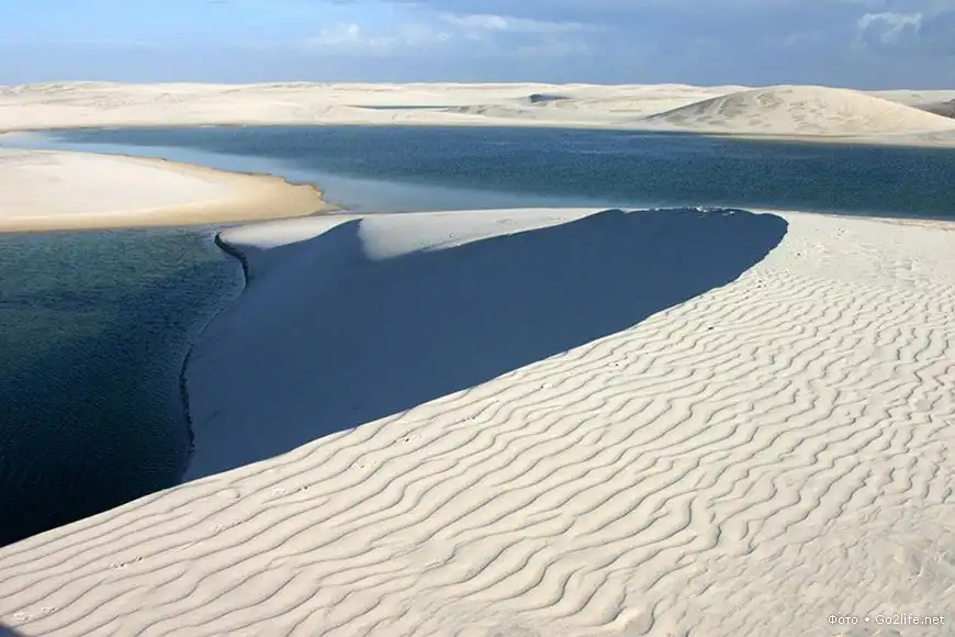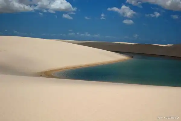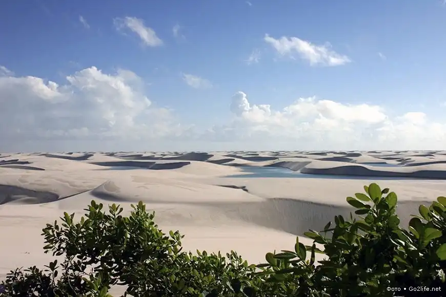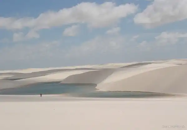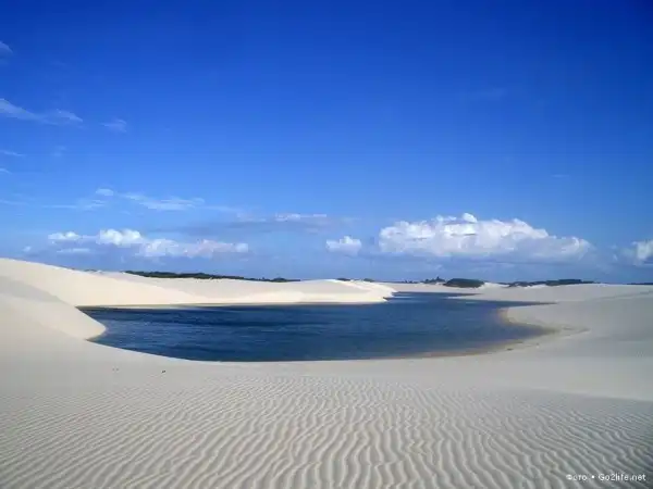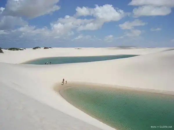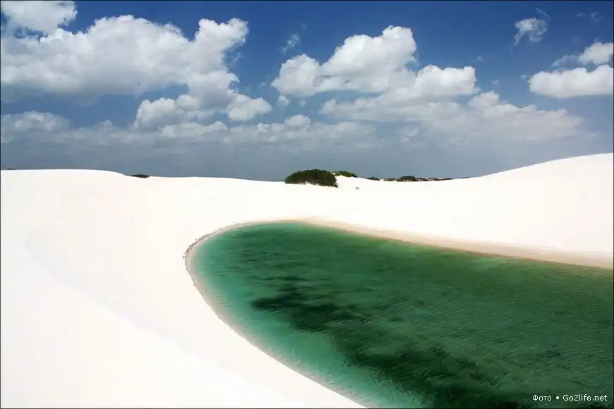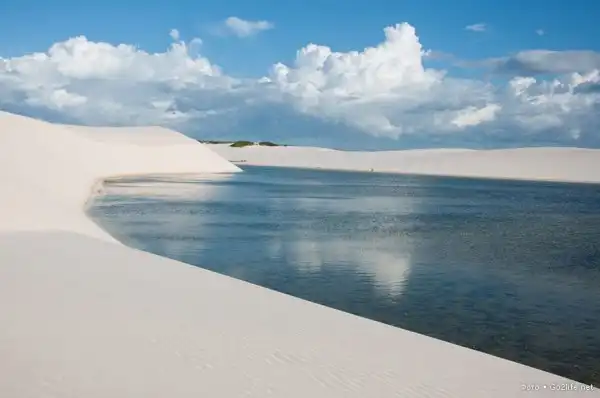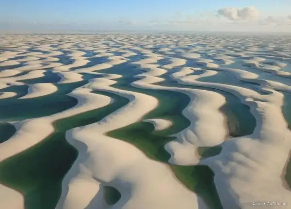 Национальный парк Lencois Maranhenses (Простыни Мараньяна) – это одно из самых удивительных мест Бразилии, который расположен в северо-восточной части Бразилии, в штате Мараньян, около города Баррейриняс. Фантастический пейзаж Lencois Maranhenses производит неизгладимое впечатление – белоснежные песчаные дюны вздымаются до 40 м в высоту, а между ними простираются удивительной красоты пресные, прозрачные озера, на общей площади парка в более, чем 1000 кв. км.