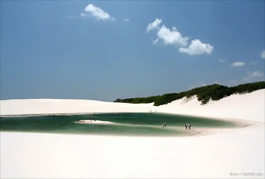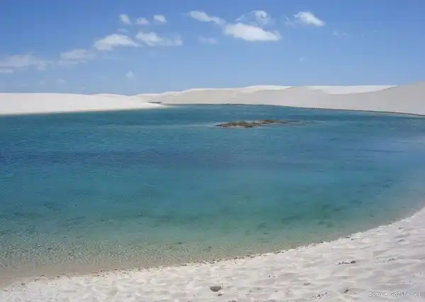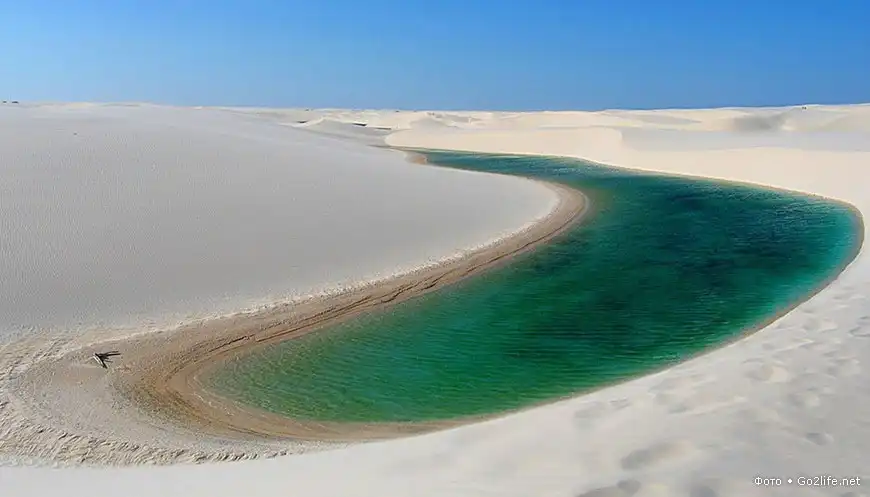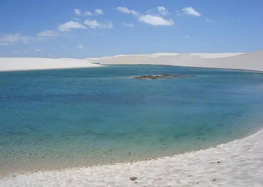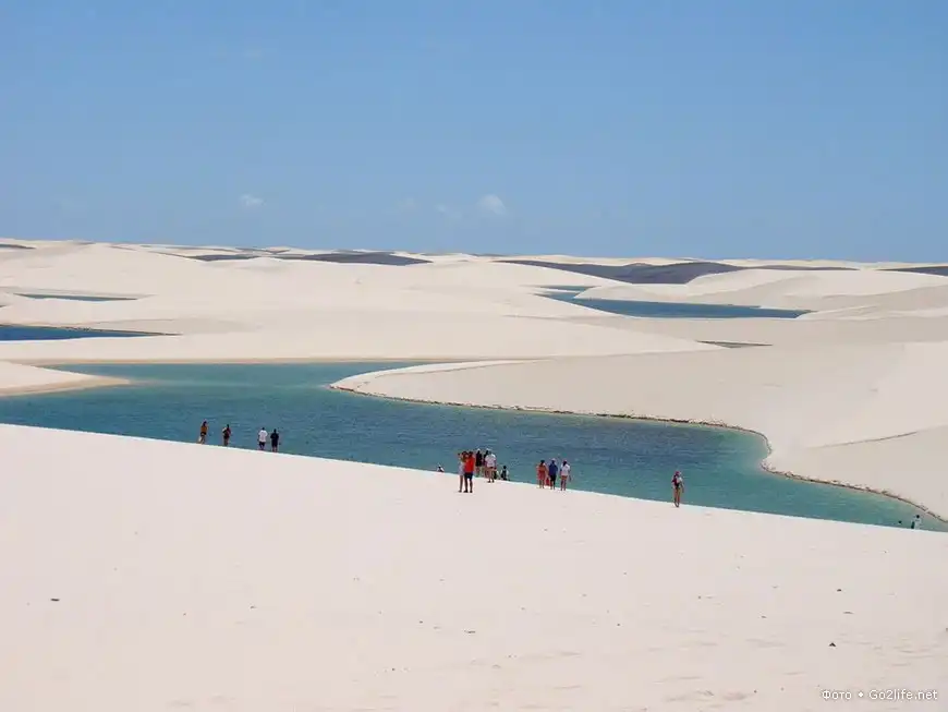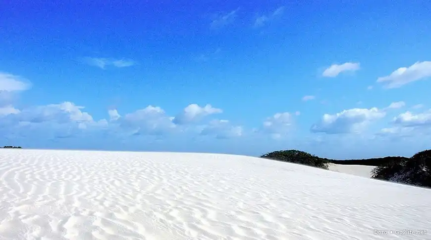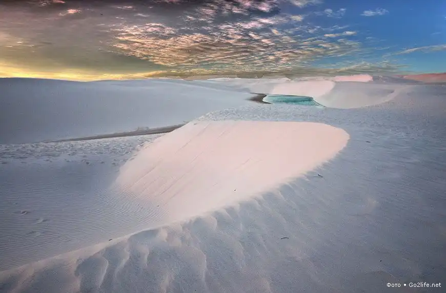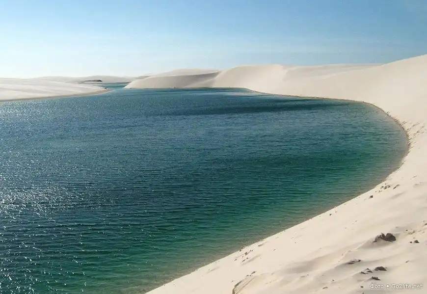 Национальный парк Lencois Maranhenses (Простыни Мараньяна) – это одно из самых удивительных мест Бразилии, который расположен в северо-восточной части Бразилии, в штате Мараньян, около города Баррейриняс. Фантастический пейзаж Lencois Maranhenses производит неизгладимое впечатление – белоснежные песчаные дюны вздымаются до 40 м в высоту, а между ними простираются удивительной красоты пресные, прозрачные озера, на общей площади парка в более, чем 1000 кв. км.
