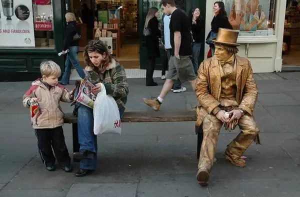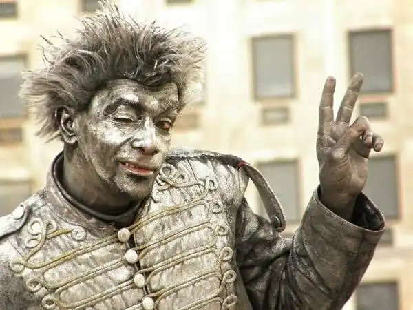 А живые они потому, что это не куски бронзы или камня, а обычные живые люди, кто посвятил себя профессии мима...