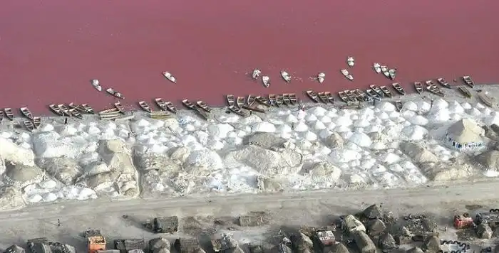 Особенностью этого соленого озера, которое находится в Сенегале, является его необычный розовый цвет. Специфический микроорганизм Dunaliella salina, который на солнечных лучах стал активно размножаться, окрасил озеро в "клубничный" цвет. Очень необычно.