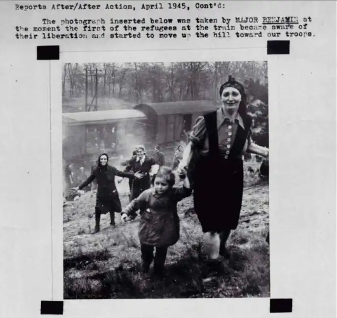 Еврейские заключенные в момент их освобождения из лагеря. 1945 год.