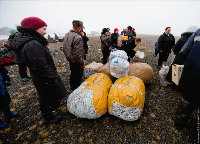 21. Быстро выгрузив 130 килограмм одежды для жителей, я побежал обратно в вертолет. Если бы меня там забыли, я бы вернулся в Москву только через 3 недели.