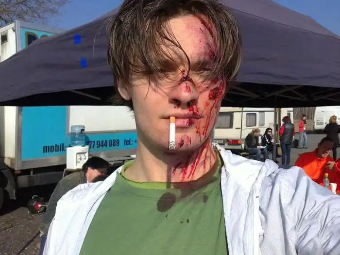 Настало время посмотреть, как с помощью специального грима делают раны