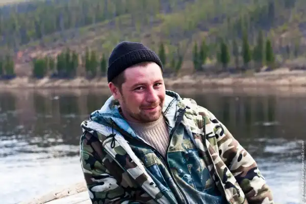 44. Ильяз. Родился в Казахстане. В детстве с родителями переехал в Куюмбу. Работает на дизельной станции, и конечно как и все в Куюмбе занимается охотой и рыбалкой - одной зарплаты мало чтобы прокормить семью. Бывал в разных городах, видел как живут там люди, но уезжать никуда не собирается. Виталий Анатольевич попросил его быть нашим проводником по реке Камо. Река не такая полноводная как Тунгуска, чтобы в это время проехать на моторке, надо знать как объезжать пороги и отмели.
