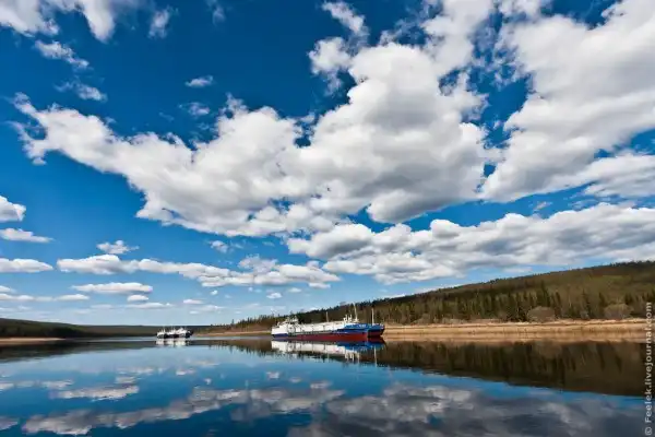 6. По пути нам попадаются в основном судна груженые нефтью. Пока не построили нефтепровод вывозят "черное золото" только по реке. Вообще Куюмбинское и Юрубчено-Тохомское месторождение являются одними из самых перспективных для разработки в ближайшие 10 лет.