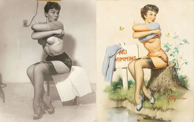 Одним из самых значимых пинап-художников ХХ века считается Джил Элвгрен (Gil Elvgren). Героинями Элвгрена становились «девушки-соседки», которых застали врасплох во время различных пикантных ситуаций. Моделей и сюжеты для своих иллюстраций Джил Элвгрен перерисовывал с фотографий.
