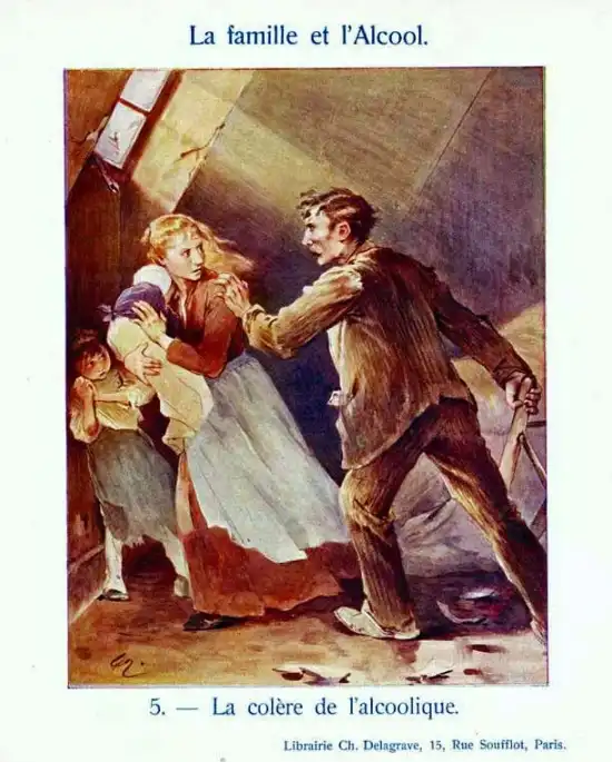 Ярость алкоголика. Несчастное семейство, как видите, уже перебралось в убогую комнатушку на чердаке.