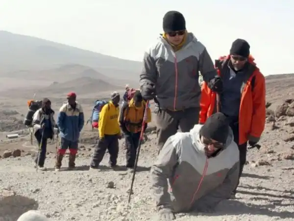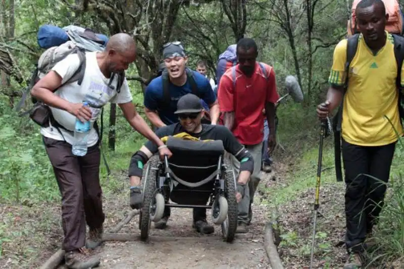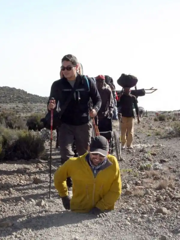 Вместе со своими друзьями он поднялся на вершину горы Килиманджаро, затратив на путешествие семь дней, при этом 80% дороги Спенсер Вест прошел на своих руках! Посмотрите на фото Спенсера Веста — на них он везде искренне улыбается, у него полно друзей, похоже, что он по настоящему счастлив.